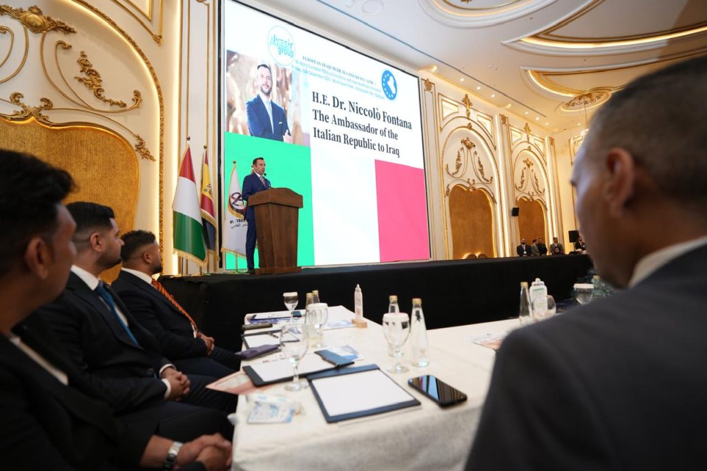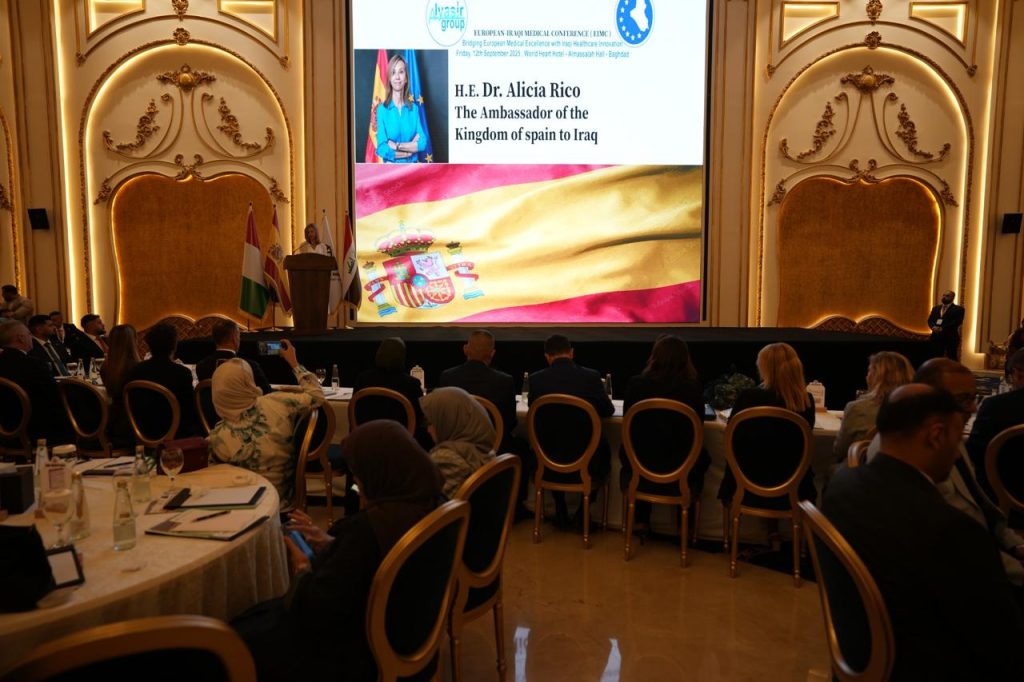 انعقد مؤتمر الأوروبي – العراقي الطبي بتاريخ 12 أيلول 2025، برعاية وتنظيم مكتب الياسر العلمي، بمشاركة واسعة من الشركات الدوائية الأوروبية التي يمثلها مكتب الياسر العلمي في العراق، وبحضور رسمي من السفارة الإيطالية ممثلةً بسعادة السفير نيكولا فونتانا والسيدة روزاماريا مديرة المكتب التجاري في السفارة الإيطالية في بغداد، وبمشاركة السفارة الإسبانية ممثلةً بسعادة السفيرة أليشيا ريكو